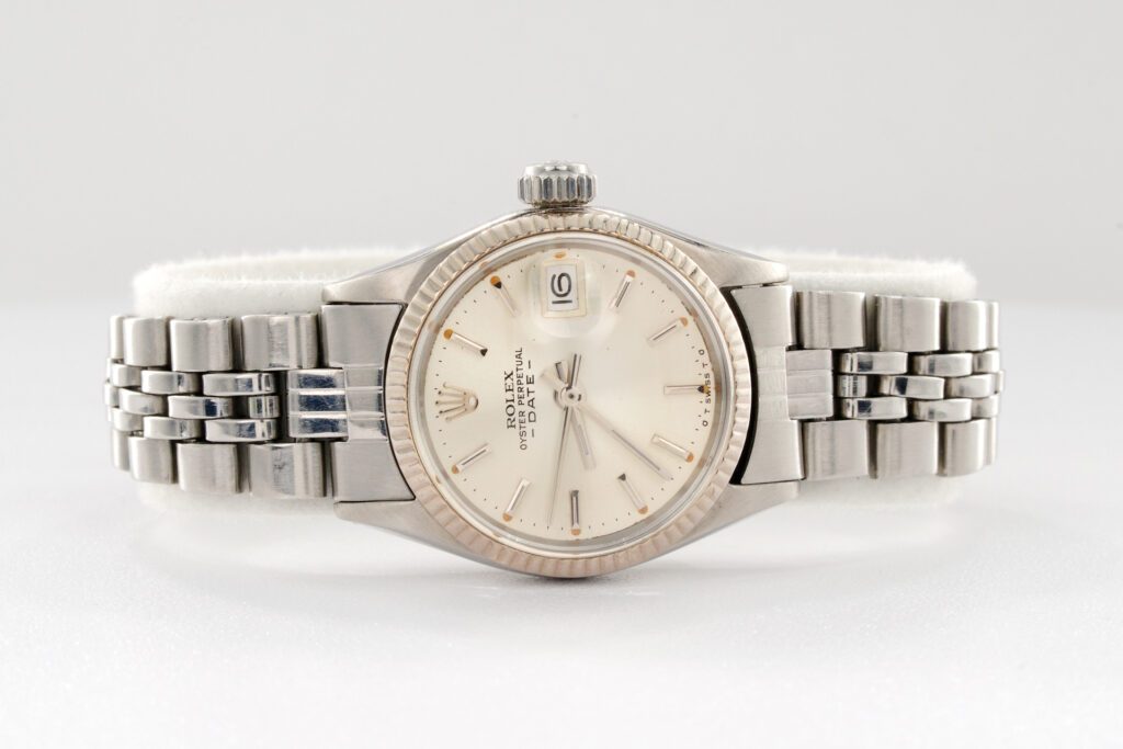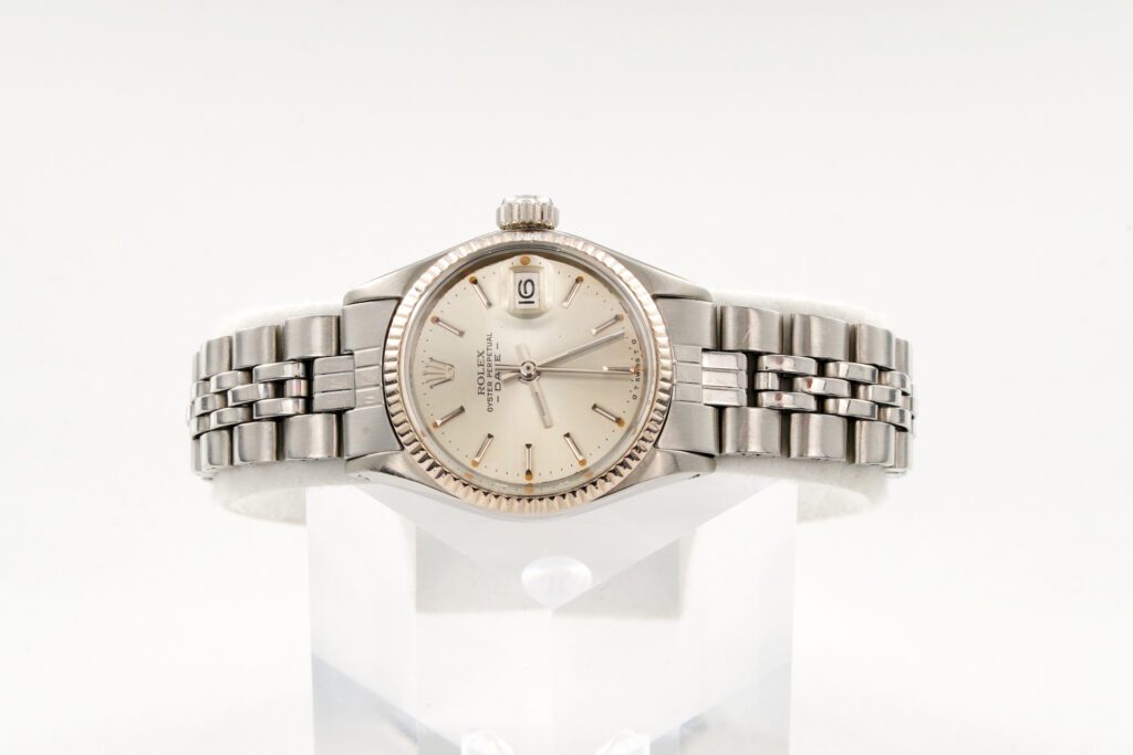 BeckerTime is proud to offer this VINTAGE Ladies 26mm Rolex Stainless Steel & 18K White Gold Date Watch model ref #6517 with a Silver Dial. It has a Rolex folded link Jubilee band. This Rolex is from the 1960’s