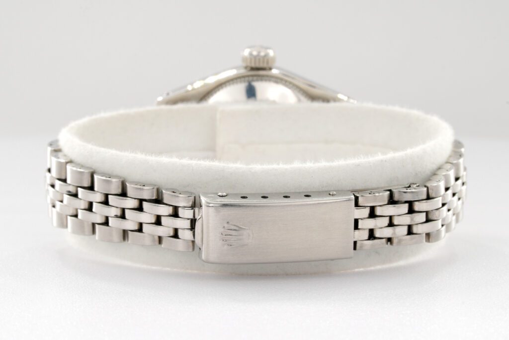 | Band | Rolex stainless steel Jubilee bracelet with Rolex signed clasp. Moderate stretch/wear. This is the lighter vintage “folded link” style Jubilee band. Of course original Rolex! |