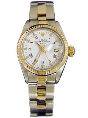 Ladies Rolex Two-Tone 14K/SS Date White Roman 6917 SKU: 4077576AMT