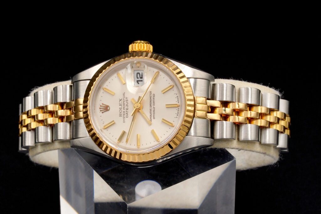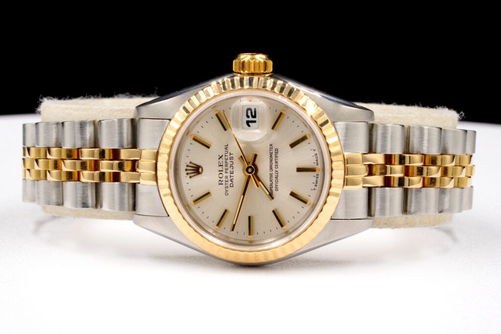 | Dial | Rolex SILVER dial with raised yellow gold stick markers |