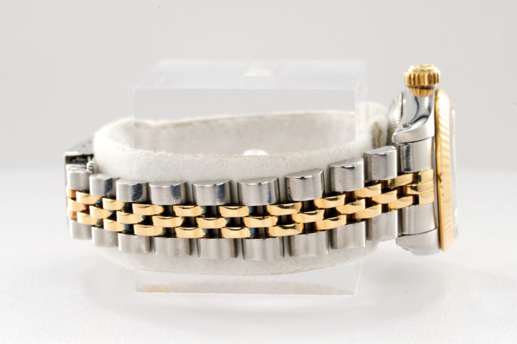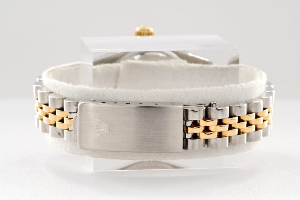 | Band | Rolex 2tone 18k yellow gold & stainless steel Jubilee bracelet with Rolex signed clasp. Moderate stretch and wear |