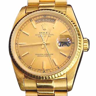 Mens Rolex 18K Gold Day-Date Watch with Black Dial 18038 SKU: B5611003NMT
