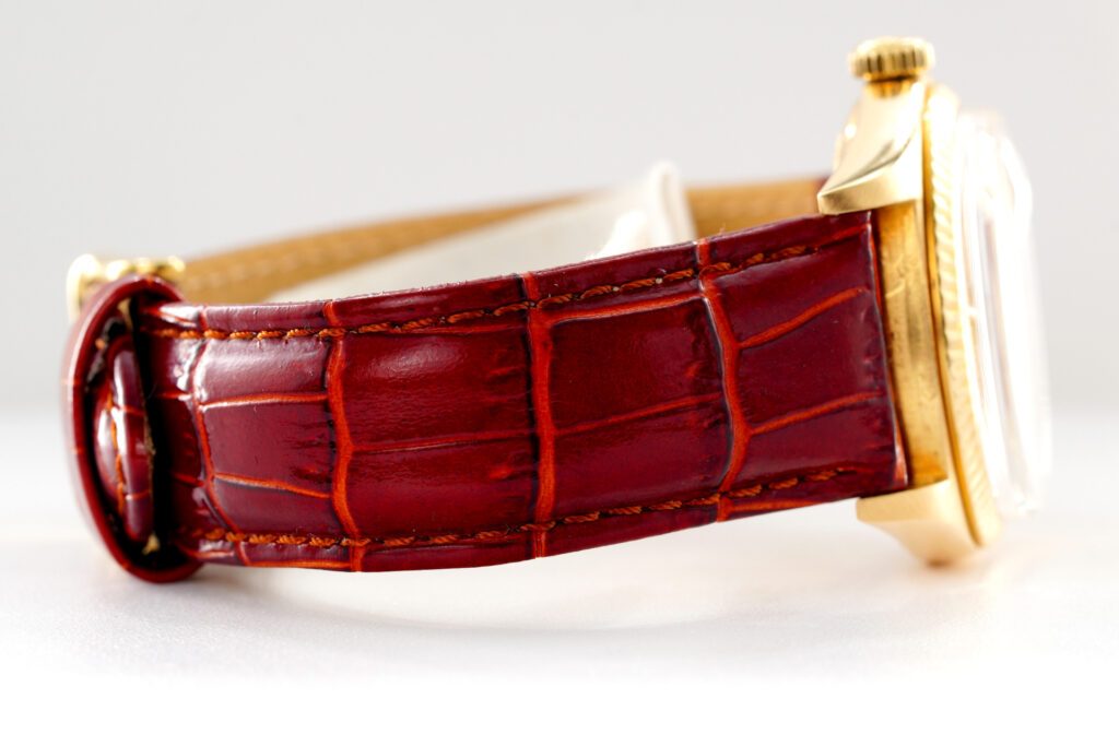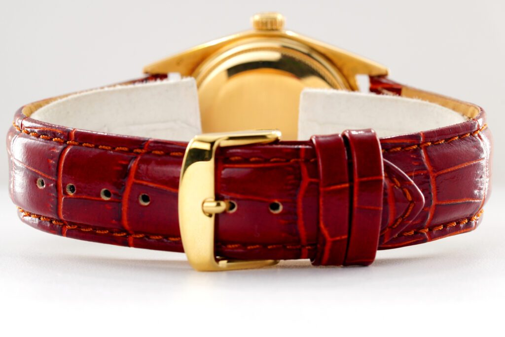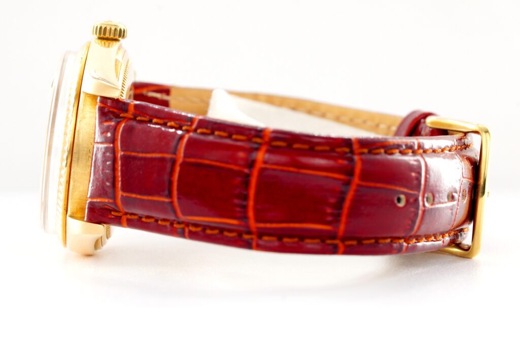 | Band | BROWN leather strap with plain gold tone buckle. This strap is not made by Rolex as it is a custom made aftermarket strap. |