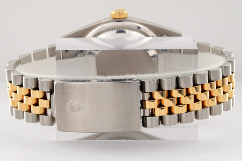 | Band | Rolex 2tone 18k yellow gold and stainless steel Jubilee bracelet with Rolex signed clasp. Moderate stretch and wear. |
