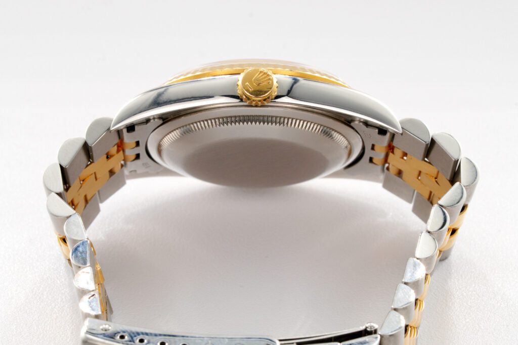| Bezel | Rolex solid 18k yellow gold FLUTED bezel |