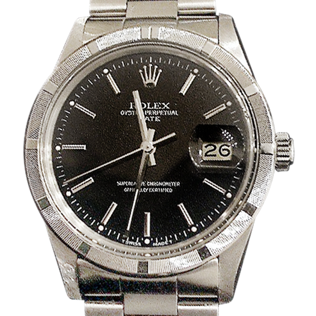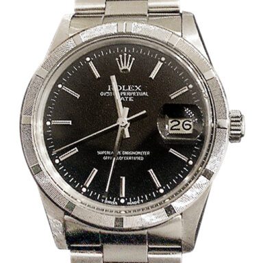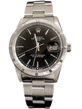 BeckerTime is proud to offer this impressive Men’s 34mm Rolex Stainless Steel Oyster Perpetual Date Watch model reference #15010 with an Engine-Turned Bezel and Black Dial. And it get’s better…This is the desired QUICKSET MODEL with a Rolex Oyster band. This Rolex is in SUPER EXCELLENT CONDITION.
