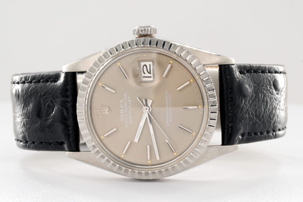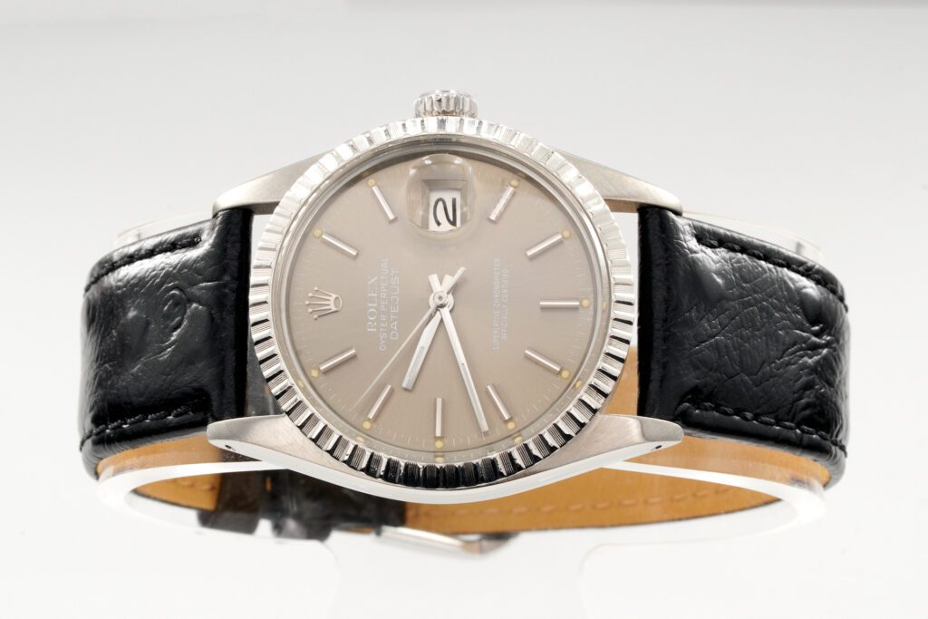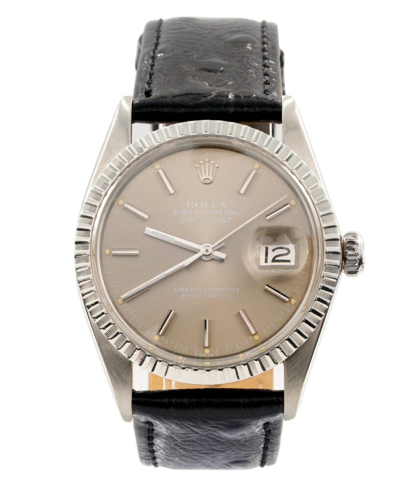BeckerTime is proud to offer this Men’s 36mm Rolex Stainless Steel Datejust Watch model ref #16030 with an Engine-Turned Bezel and Brownish Slate Dial. And it get’s better…This is the desired QUICKSET MODEL and is fitted with an aftermarket Black leather band. This Rolex is in EXCELLENT CONDITION.