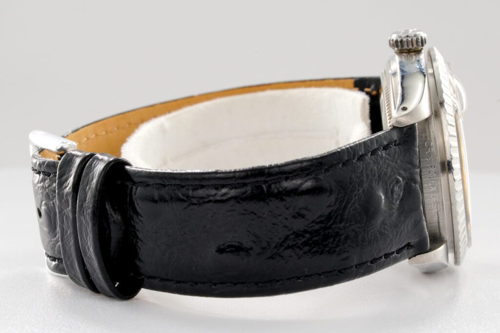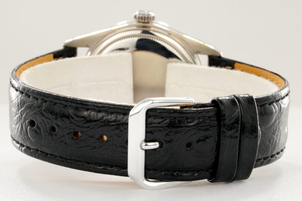 | Band | BLACK leather strap with plain stainless steel buckle. This strap is not made by Rolex as it is an aftermarket band. |