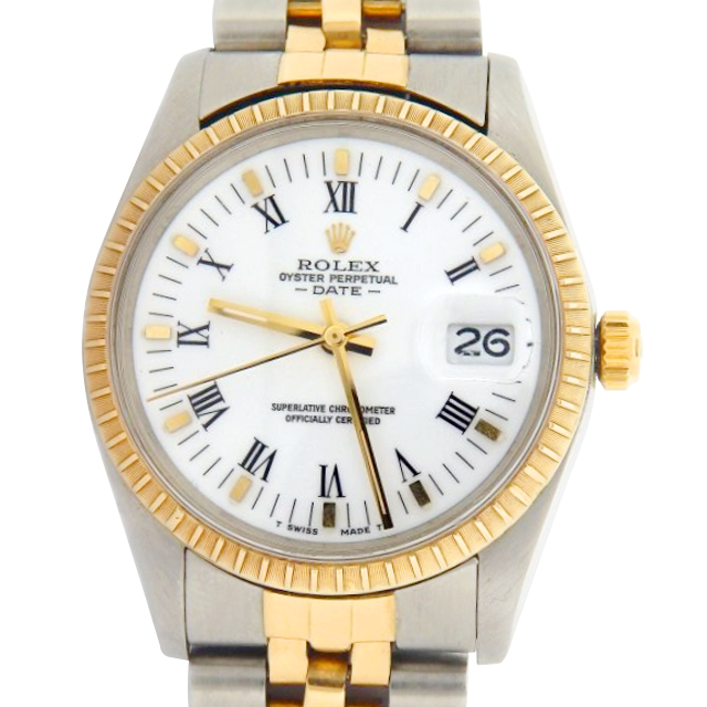 Mens Rolex Two-Tone 18K/SS Date White Roman 15053 SKU: 7212235MT