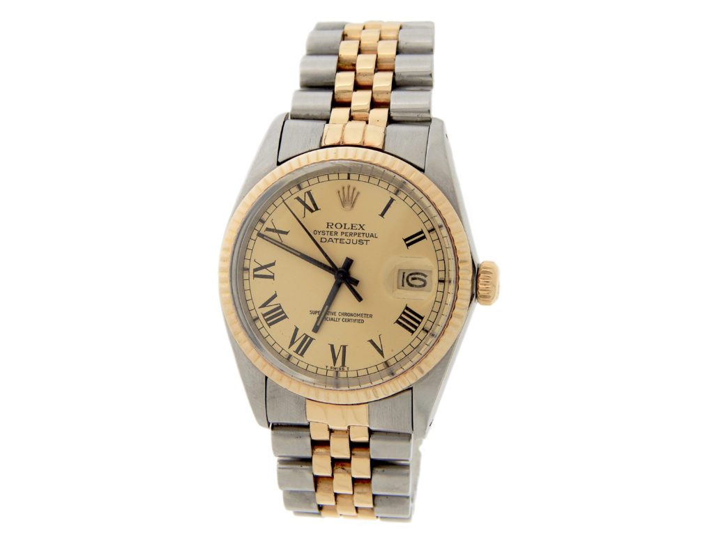 Mens Rolex Two-Tone 18K/SS Datejust Champagne Roman Dial 16013 SKU: 6454297AMT