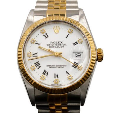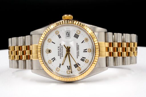 Mens Rolex Two-Tone 18K/SS Datejust Watch White Diamond Roman Dial 16013 SKU: R511519DAMT