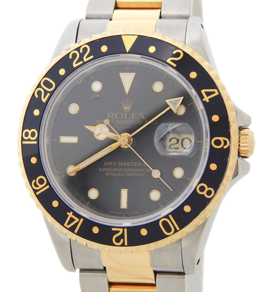 Mens Rolex Two-Tone 18K/SS GMT Master II Black Dial 16713 SKU: N148891AMT