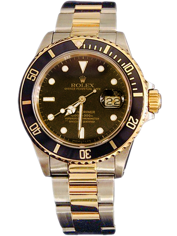 Mens Vintage Rolex Two-Tone Submariner Watch 16803 Black SKU: R247153MT