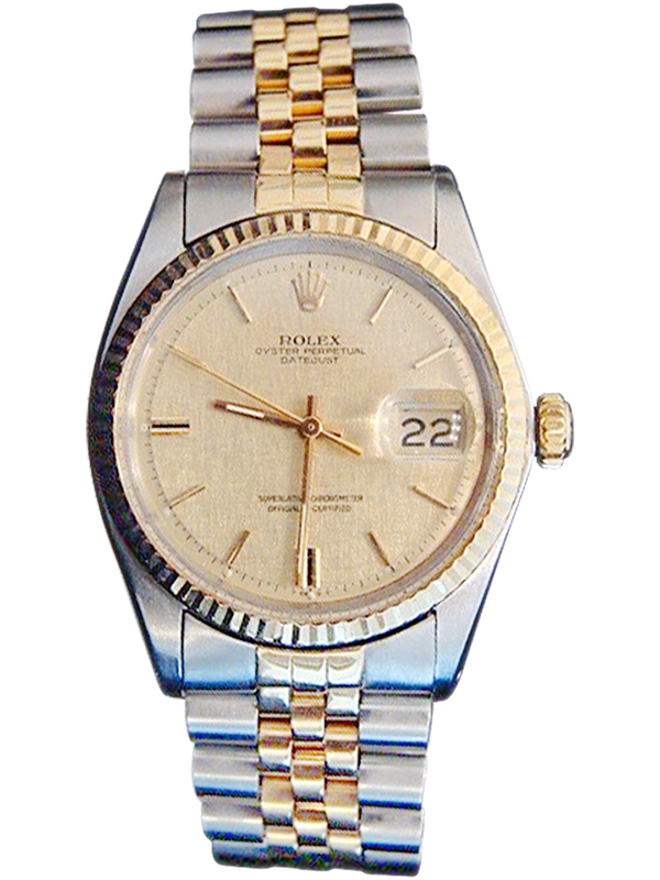 Mens Rolex Two-Tone Datejust 1601 Watch with Gold Linen Dial SKU: 791MT