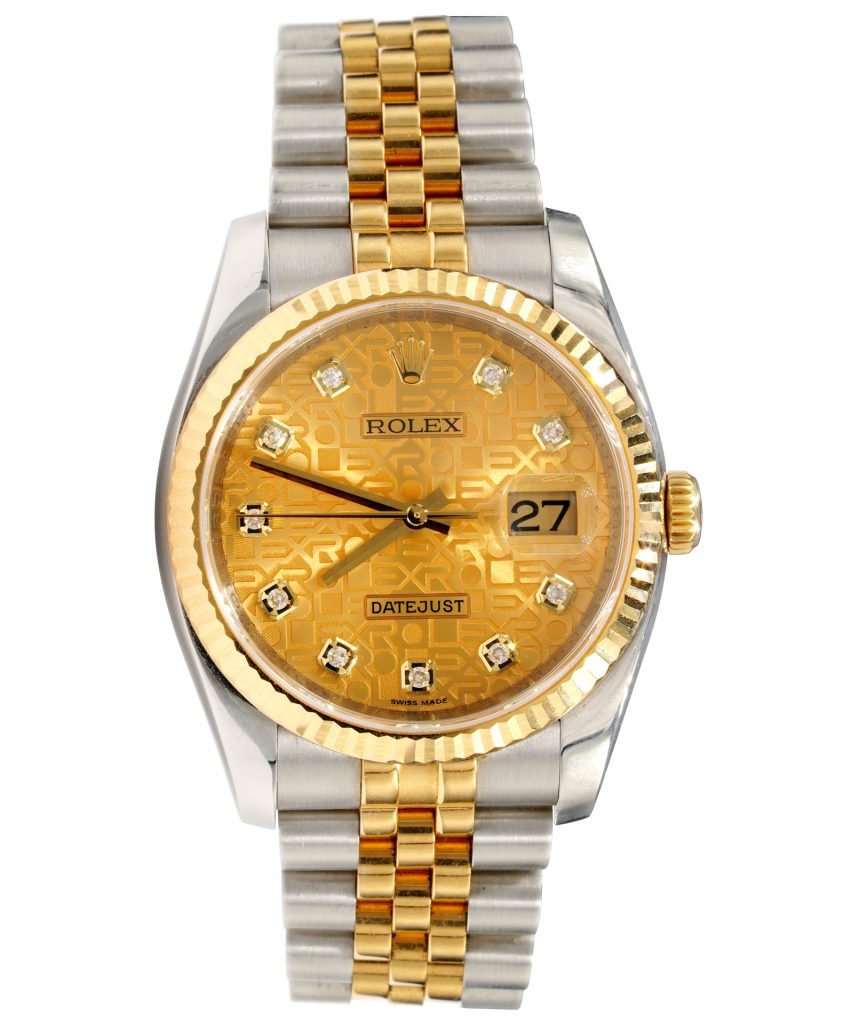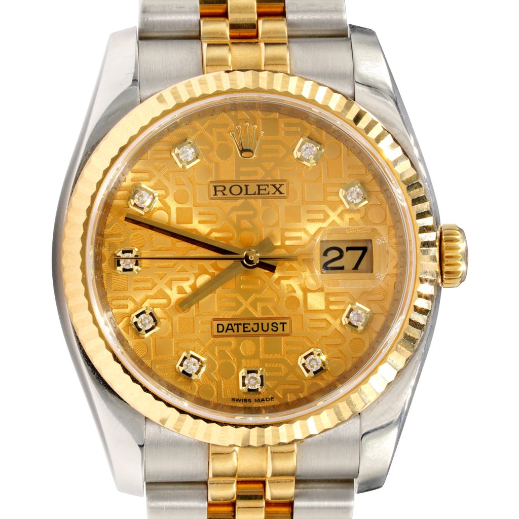 | Bezel | Rolex solid 18k yellow gold FLUTED bezel |