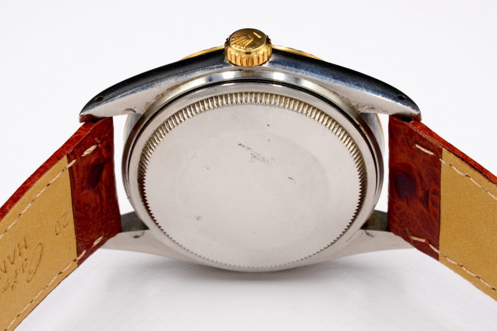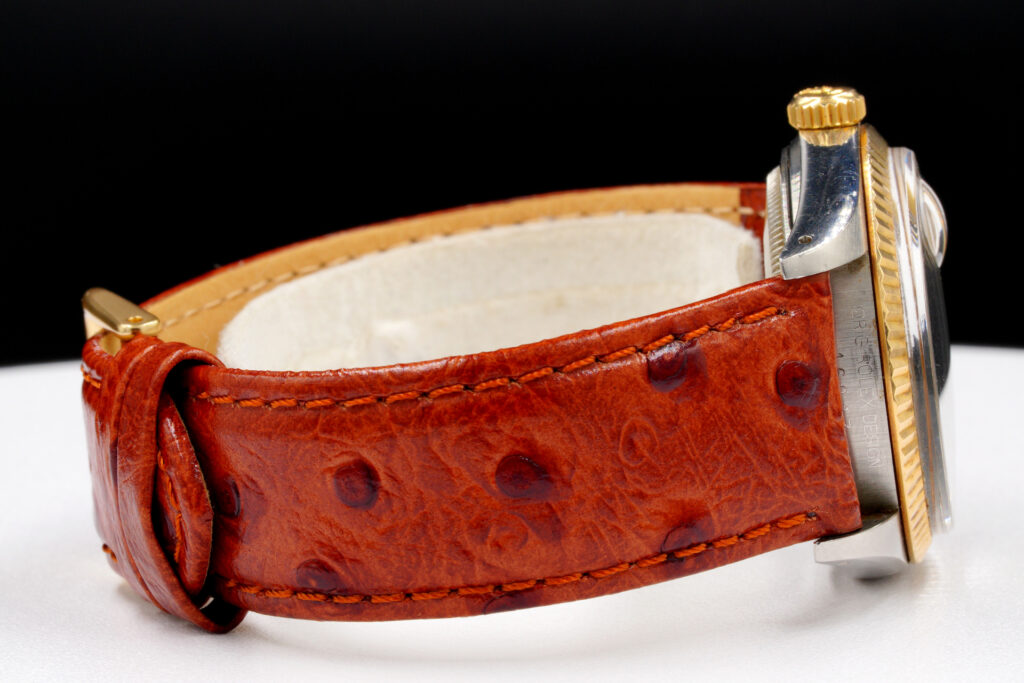 | Band | BROWN leather strap with plain gold-tone buckle. This strap is not made by Rolex as it is a custom made aftermarket band. |