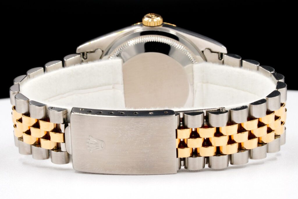 | Band | Rolex 2tone 18k yellow gold and stainless steel Jubilee bracelet with Rolex signed clasp. Moderate stretch and wear. |