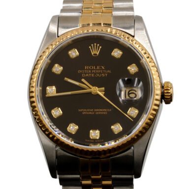 Mens Rolex Two-Tone Datejust Watch Ref. 16233 with Black Factory Diamond Dial SKU: P720219DAMT