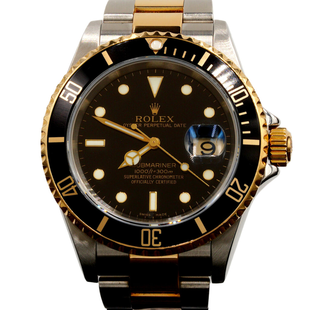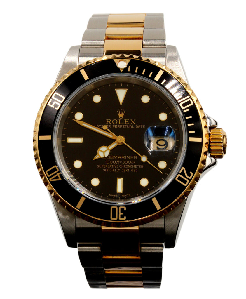 Mens Rolex Two-Tone Submariner 16613T Watch with Black Dial & Bezel - Mid 2000s SKU: F635719AMT