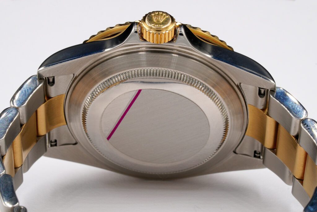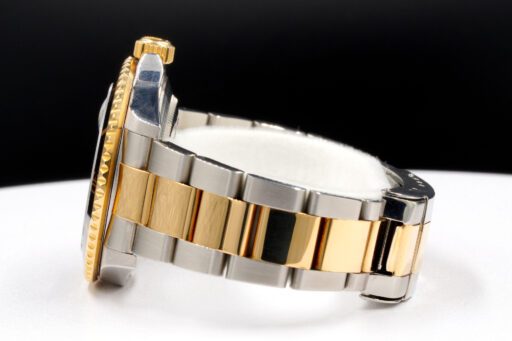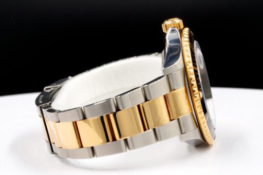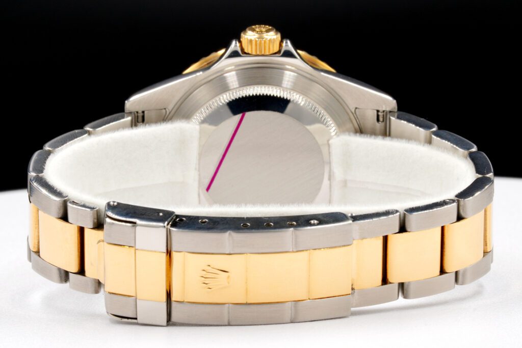 | Band | Rolex 2tone 18k yellow gold and stainless steel Oyster bracelet with Rolex signed flip-lock clasp and special divers extension. THIS IS THE SEL (SOLID END LINK) BAND WITH THE GOLD THROUGH CLASP THAT IS MOST DESIRED. |