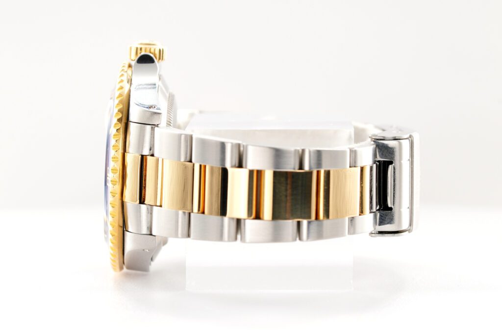 Bezel Rolex solid 18k yellow gold bezel with a blue bezel insert; Unidirectional time-lapse