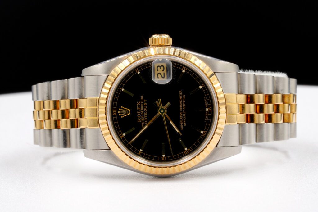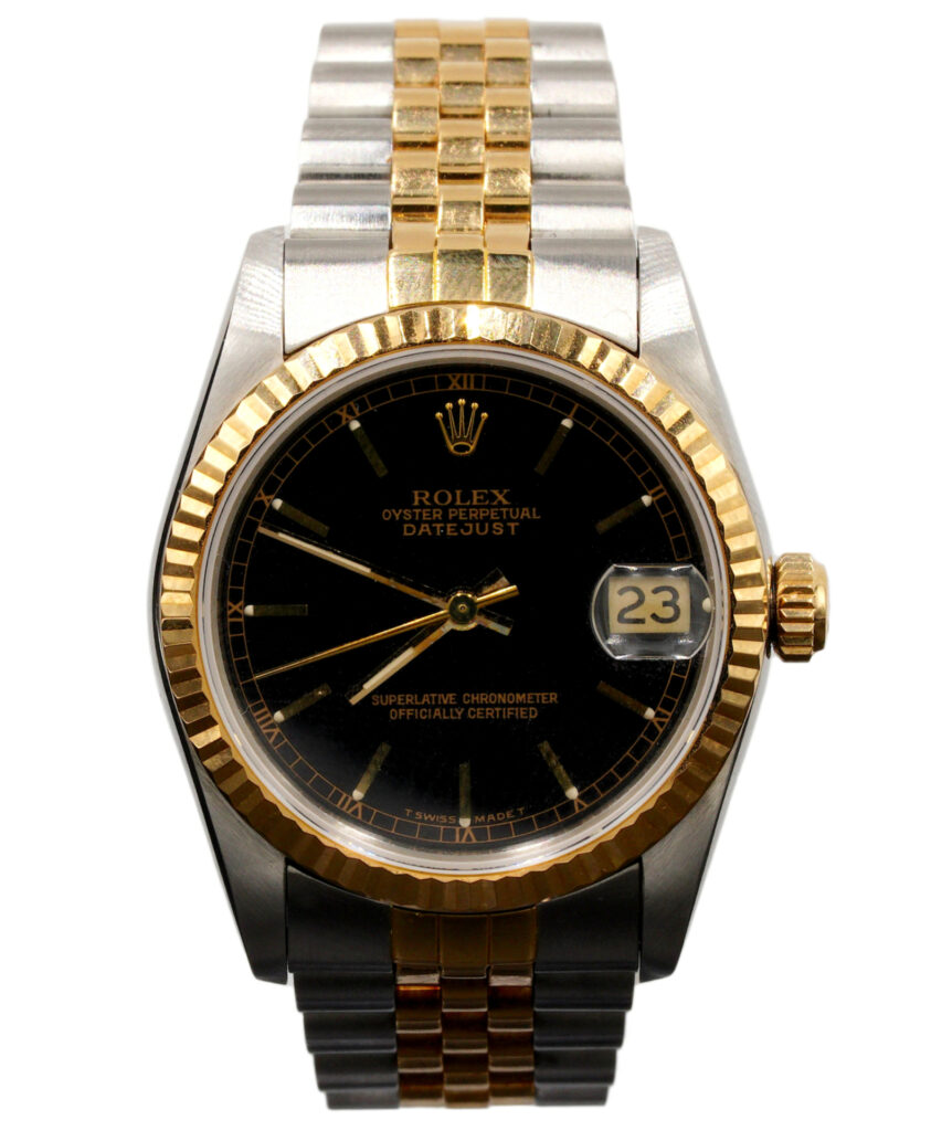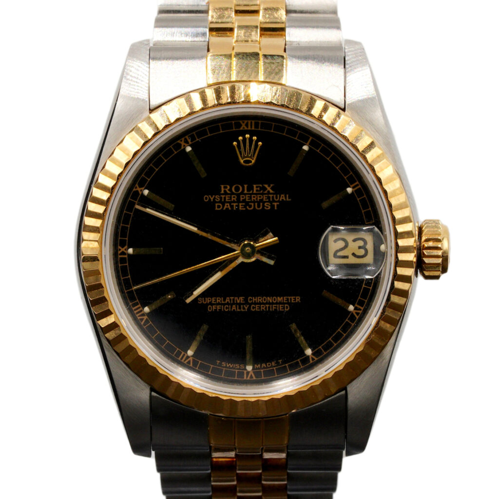 Mid Size Rolex Two-Tone Datejust Watch Black Dial Jubilee Band 68273 SKU: L391933AMT