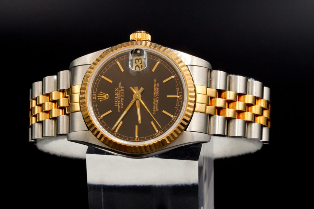 | Bezel | Rolex solid 18k yellow gold FLUTED bezel |
