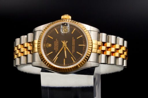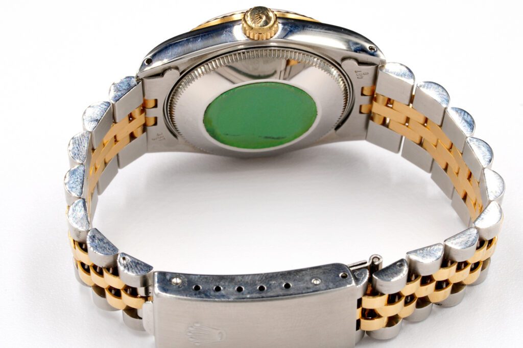| Band | Rolex two-tone 18k yellow gold and stainless steel Jubilee bracelet with Rolex signed clasp. |
