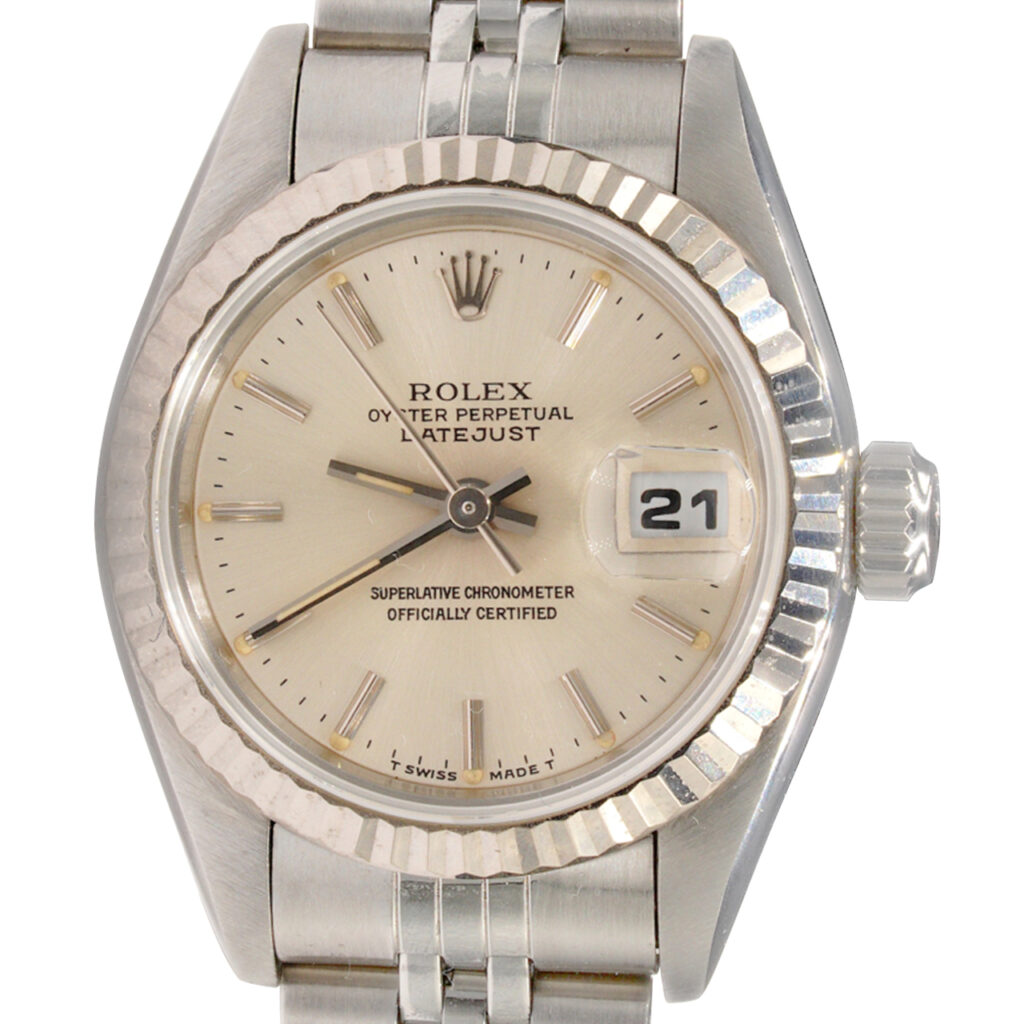 | Bezel | Rolex solid 18k white gold FLUTED bezel |