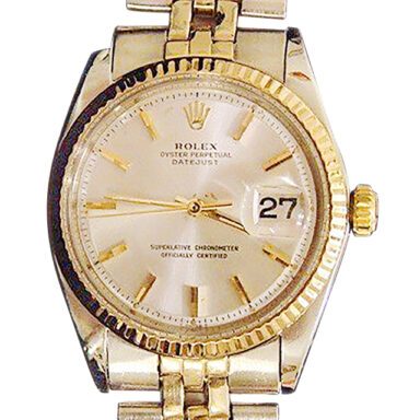 | Dial | Rolex SILVER dial with raised yellow gold stick markers |