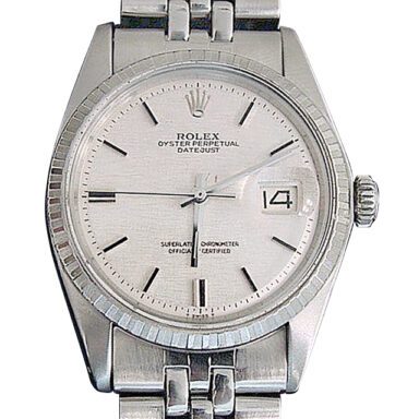BeckerTime is proud to offer this handsome vintage Men’s 36mm Stainless Steel Rolex Datejust Watch ref #1603 with a Silver Linen Dial and Engine-Turned Bezel. And it get’s better…It has the Rolex USA “Oval Link” Jubilee band. This timepiece is in EXCELLENT CONDITION.