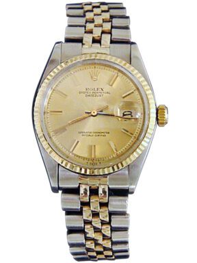 BeckerTime is proud to offer this vintage Men’s 36mm Rolex 2Tone 14K Yellow Gold & Stainless Steel Datejust Watch ref #1601 with a Gold Champagne Dial. It has a Rolex USA Oval Link Jubilee band. This Rolex is in FAIR/EXCELLENT CONDITION.