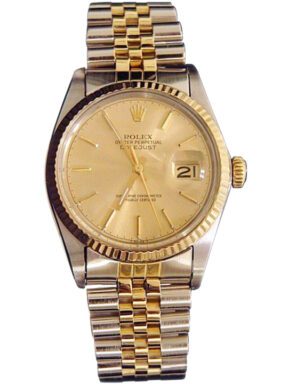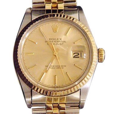 BeckerTime is proud to offer this super nice Men’s 36mm Rolex 2Tone 18k Yellow Gold & Stainless Steel Datejust Watch ref #16013 with a Gold Champagne Dial. And it get’s better…This is the QUICKSET MODEL with a Rolex Jubilee band. This Rolex is in SUPER EXCELLENT CONDITION.