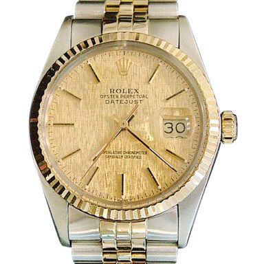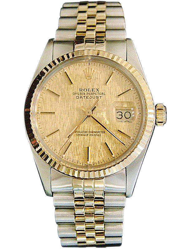| Dial | Rolex GOLD LINEN dial with raised yellow gold stick markers |