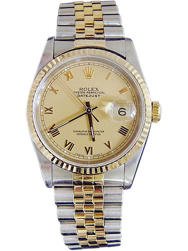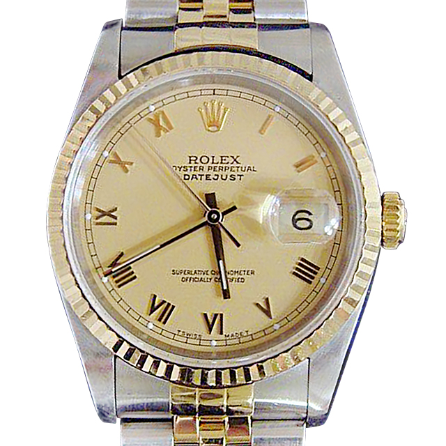 Mens Rolex Two-Tone 18K/SS Datejust Champagne Roman 16233 SKU: DJ151111MT