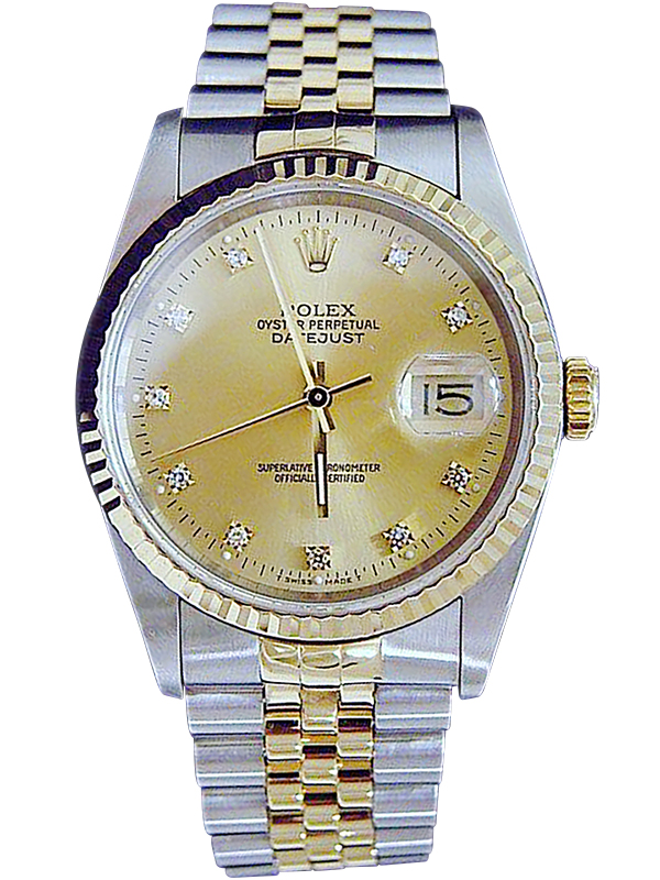 Mens Rolex Two-Tone 18K/SS Datejust Champagne Diamond 16233 SKU: L581532BCMT