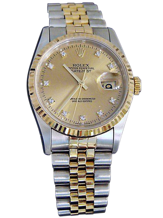 Mens Rolex Two-Tone 18K/SS Datejust Champagne Diamond 16233 SKU: W101575CMT