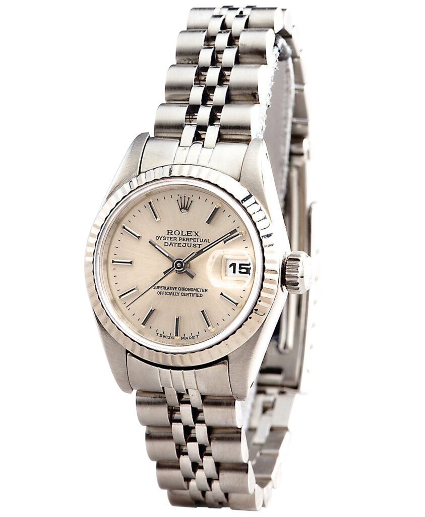 Ladies Rolex Stainless Steel Datejust 69174 with White Gold Fluted Bezel and Silver Dial SKU: L2266572NMT