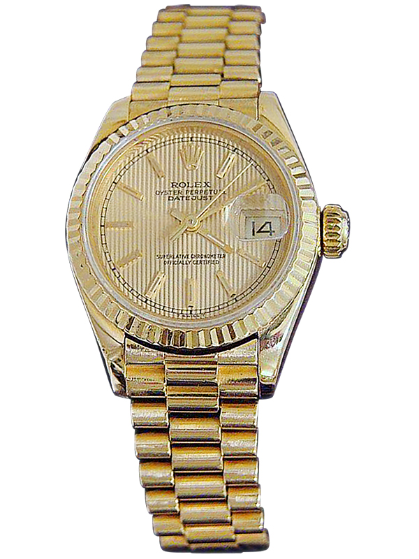 | Bezel | Rolex 18K yellow gold FLUTED bezel |