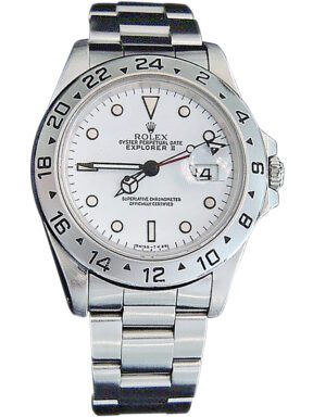BeckerTime is proud to offer this impressive Men’s 40mm Rolex Stainless Steel Explorer II Date Watch ref #16570 with a White Dial. This Rolex is in SUPER EXCELLENT CONDITION.