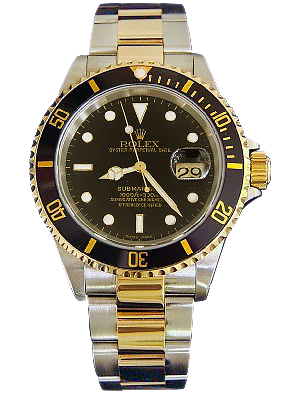 BeckerTime is proud to offer this super nice Mens 40mm Rolex Two-Tone 18k Yellow Gold & Stainless Steel Submariner Watch ref #16613 with a Black Dial and Bezel. And it get’s better…This is an early 2000’s model with a Rolex “SEL” Oyster band. This Rolex is in SUPER EXCELLENT CONDITION.